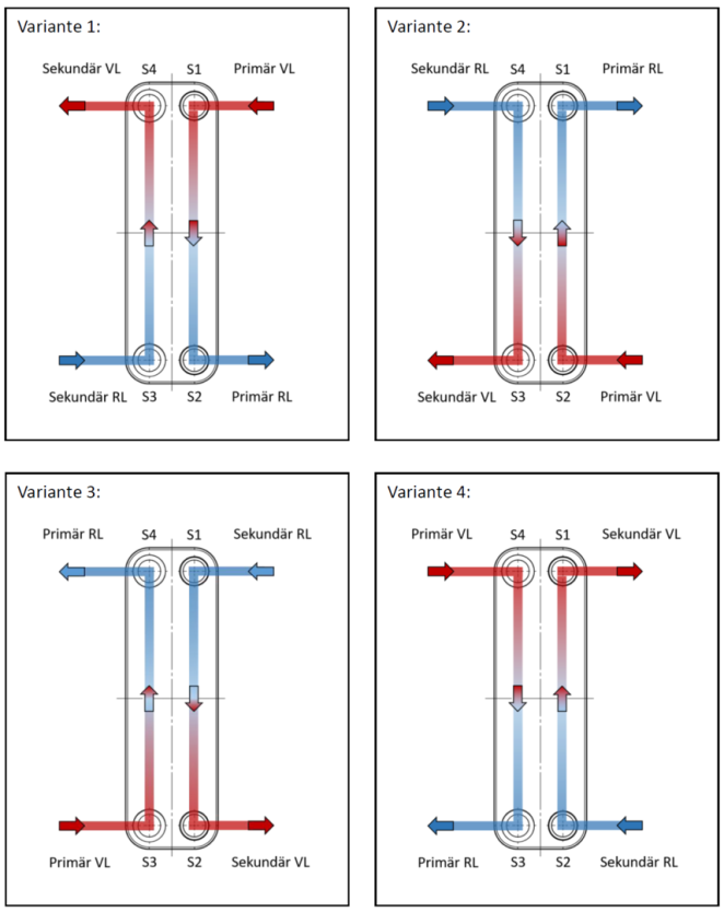 warme Seite = Primärseite (vom Wärmeerzeuger/Fernwärme)